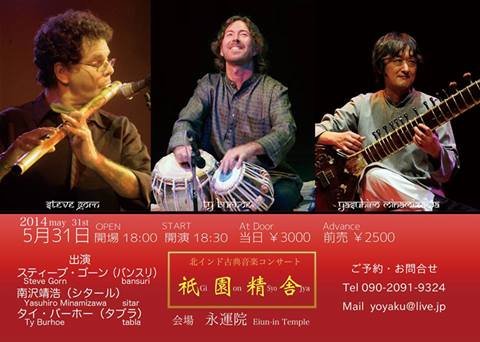 Steve Gorn – Bansuri flute Yashuhiro Minamizawa – Sitar Ty Burhoe – Tabla http://www.tyburhoe.jp/Events_JP/Concerts_JP/index.htm